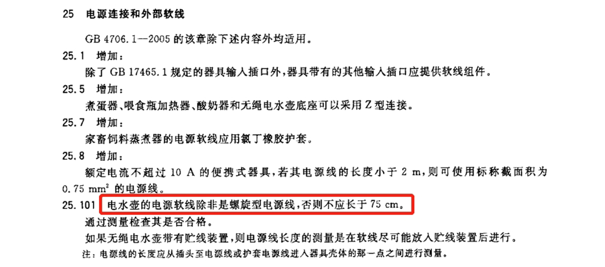 國家標準要遵循根據GB 4706.19-2008《家用和類似用途電器的安全 液體加熱(rè)器(qì)的特殊要(yào)求》規定,電水壺的(de)電源軟線除非是螺旋(xuán)型電源線,否則不應長於75cm。