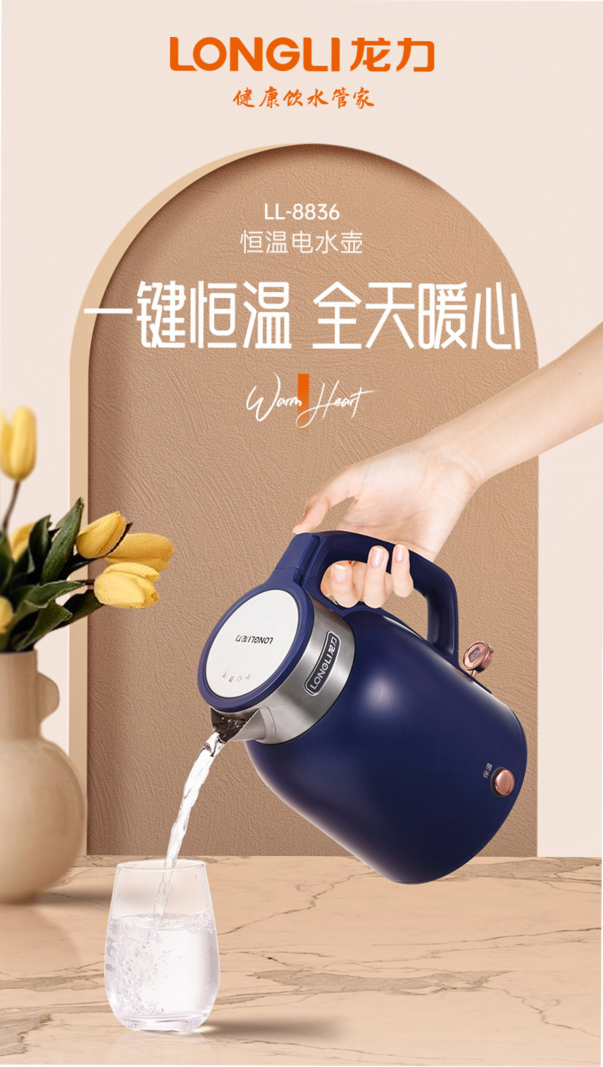 新年準備到啦~你家的電水壺換新了嗎?快點備一個龍(lóng)力(lì)電水壺吧(ba),我們是您的健康飲水管家(jiā),讓你喝上健康水、安心水!